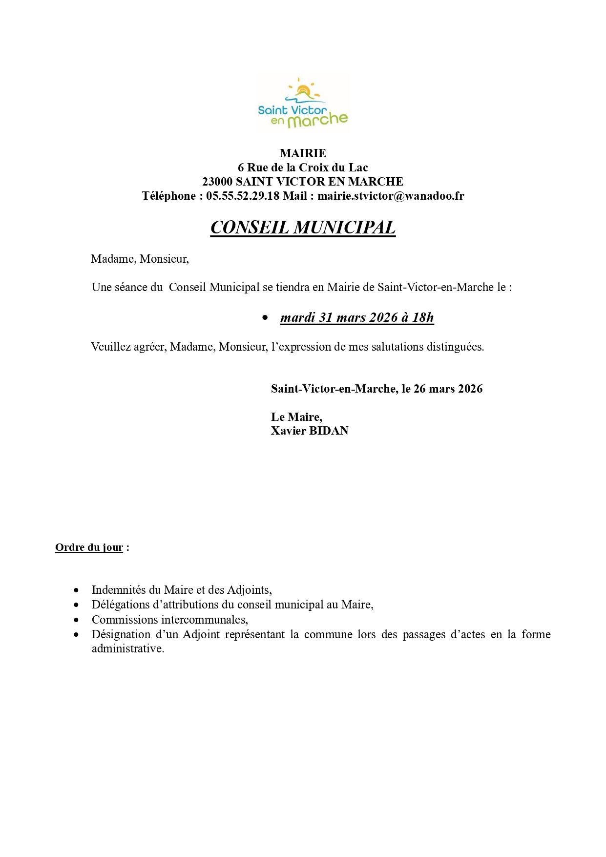 La mairie de Saint-Victor-en-Marche sera fermée du 31/10/2022 au 09/11/2022.